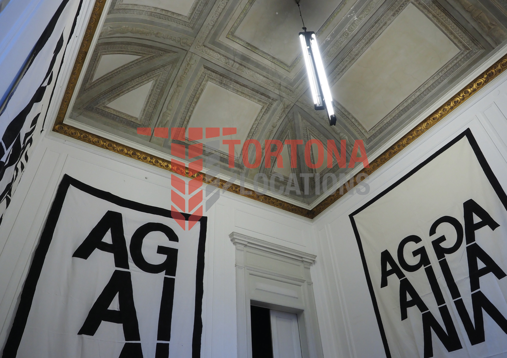 The space is divided into several modular rooms, easily adaptable for temporary showrooms, private events, and exhibitions. Large windows and original frescoed ceilings provide abundant natural light and authentic character.