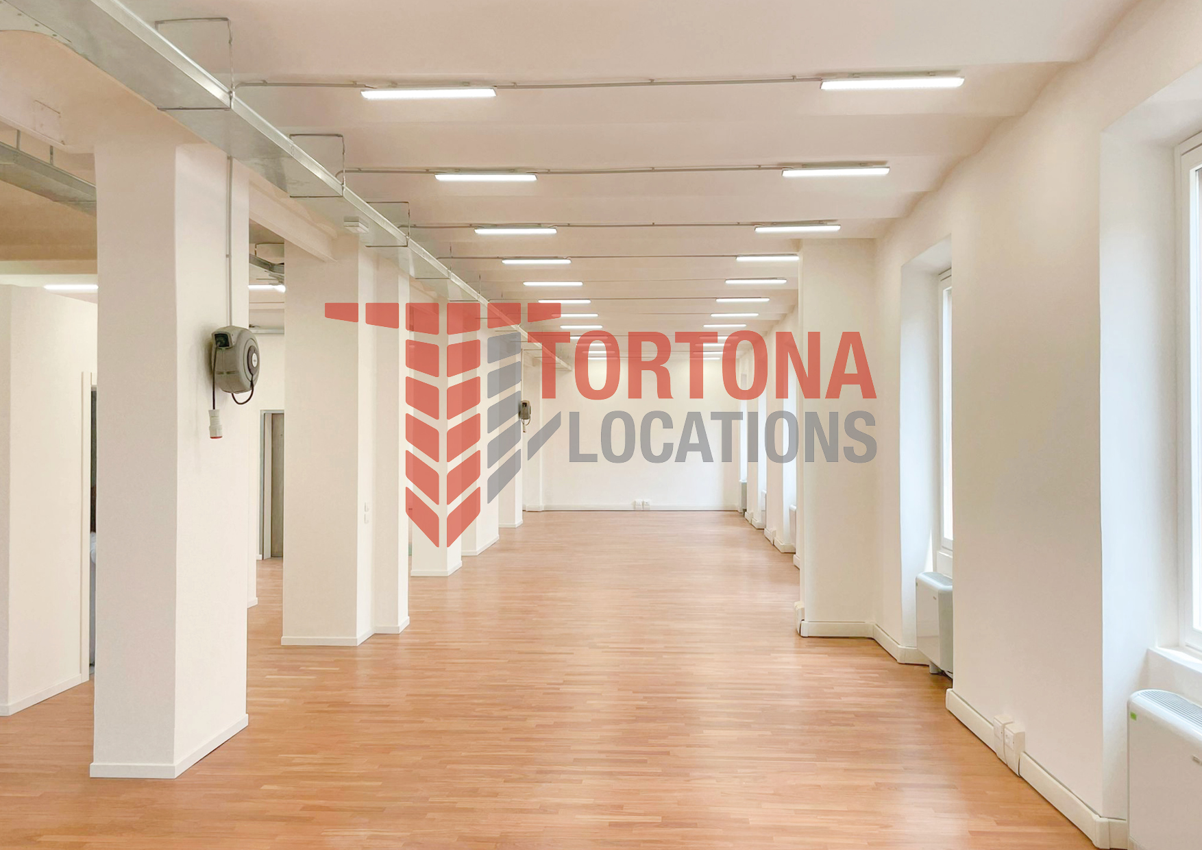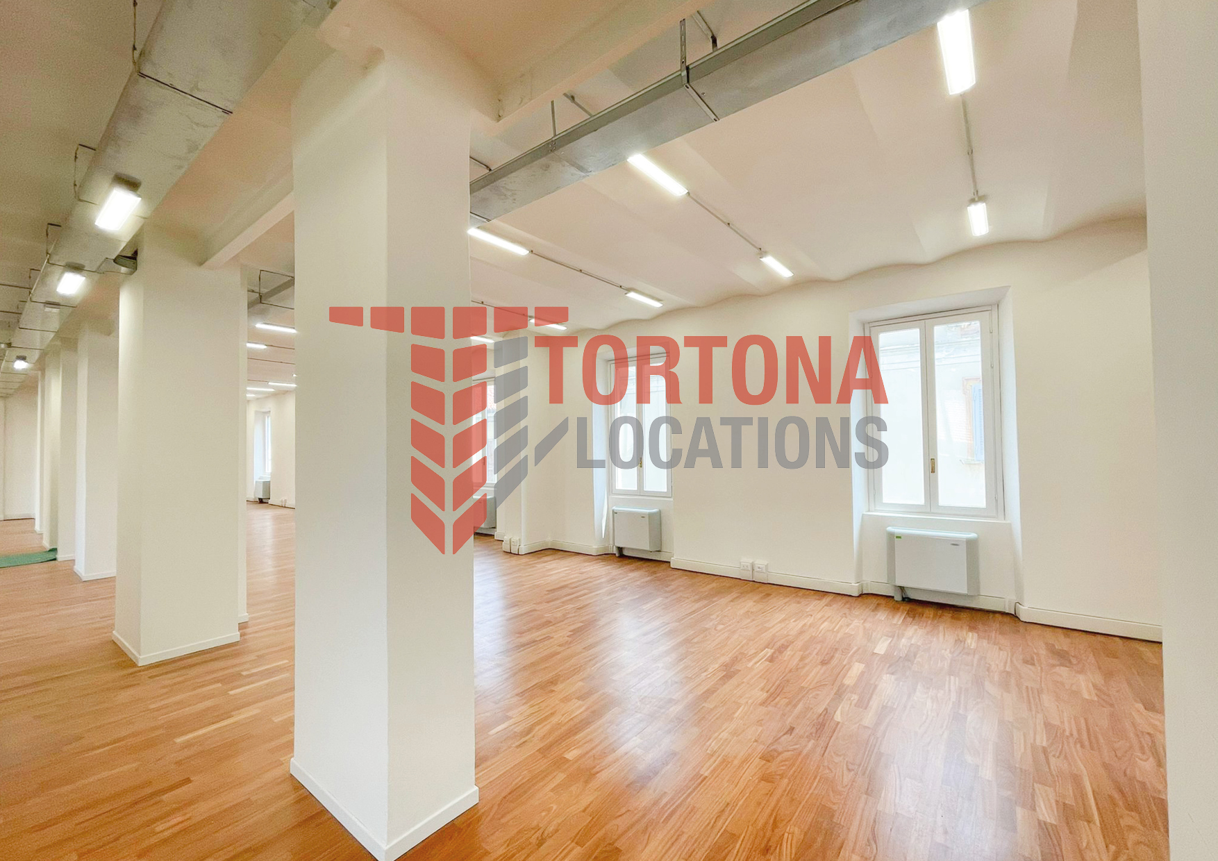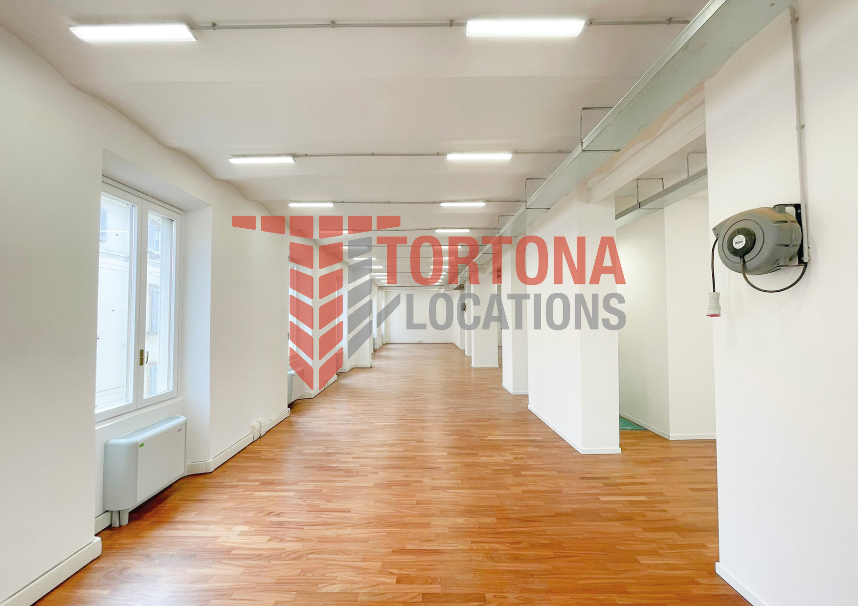 L’ambiente, completamente ristrutturato, è un open space di grande impatto visivo: pareti bianche, pavimento in parquet e ampie finestre su più lati lo rendono estremamente luminoso e accogliente. Presenti prese industriali.